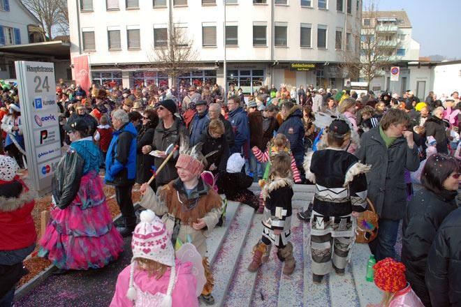 Für den Fasnachtsumzug war der Wettergott gut gelaunt. Bei strahlend blauem Himmel kamen die bunten Kostüme der verschiedenen Fasnachtsgruppen so richtig zur Geltung. Eine sehr grosse Zuschauerzahl erfreute sich an dem bunten Treiben.